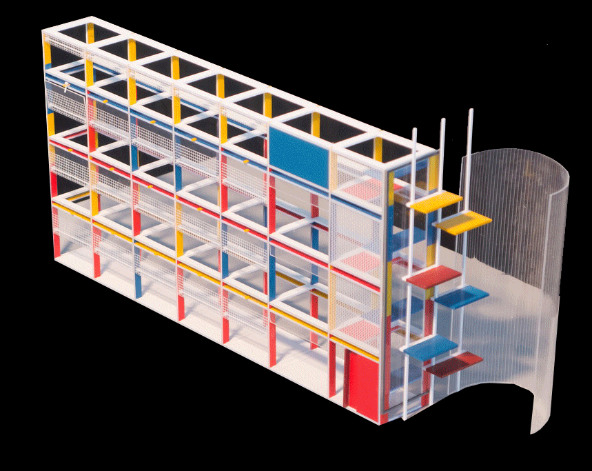 La estructura general del espacio se organiza a través de niveles de arcos que se integran con las vigas originales del edificio. La sala y cocina comparten un diseño abierto, pero pueden separarse gracias a una puerta corrediza que evita el paso de los gatos a la zona de cocina.